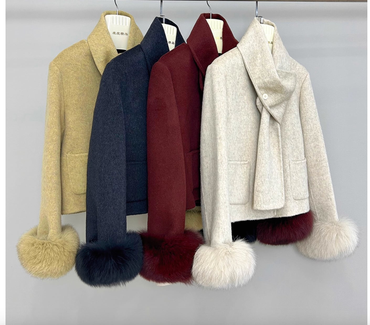 ■ウール70% 袖ファー付き ウール ジャケット コート アウター 冬 ショート丈 フォックスファー 4色 コート冬 秋 アウター ジャケット ミディ丈 コート