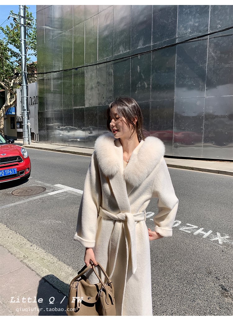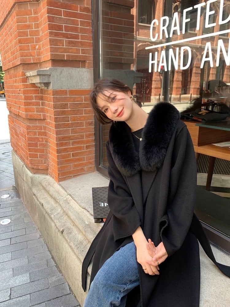 フォックスファー付き100%ウールの高品質コート♪