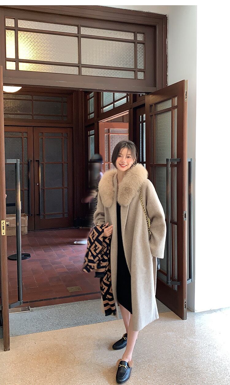 ウール100% フォックスファー ロング丈 ウールコート アウター フードファー 3色