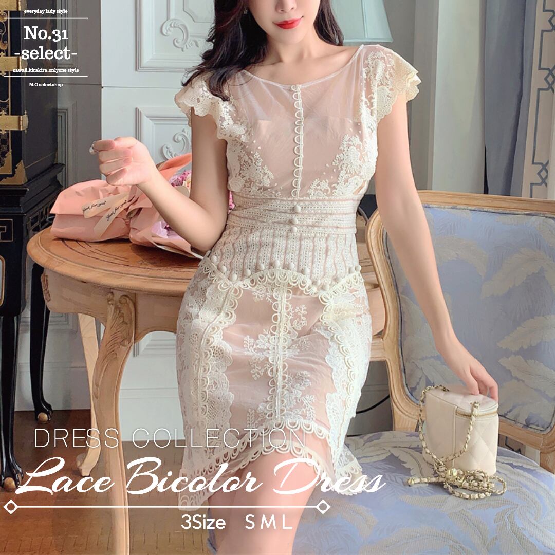 総レース ヌーディー ミニドレス ワンピース キャバドレス ノースリーブ 韓国ファッション