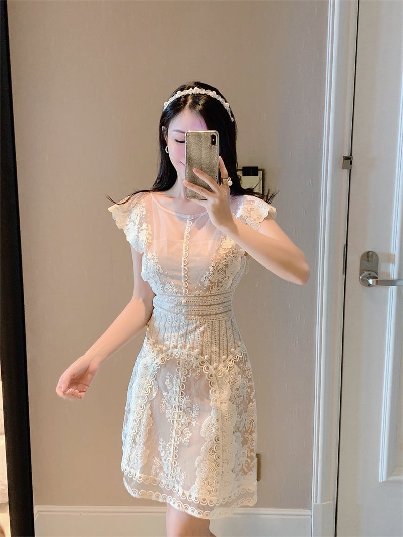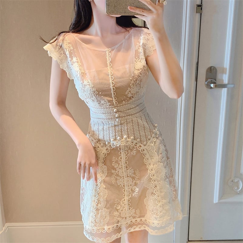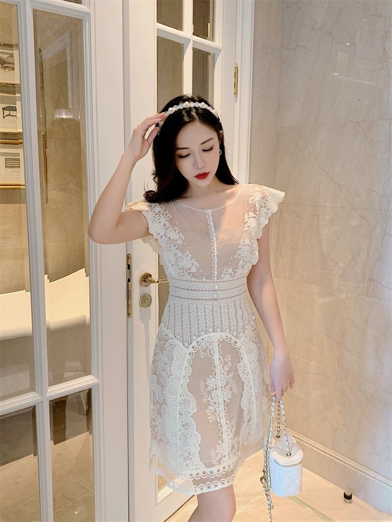 ■総レース ヌーディー ミニドレス ワンピース キャバドレス ノースリーブ 韓国ファッション