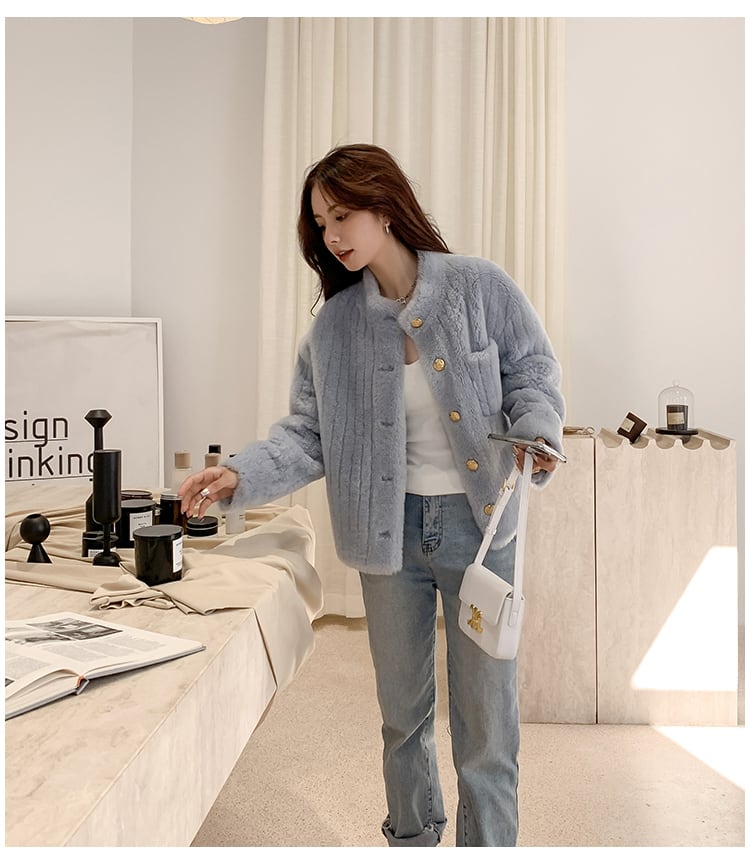 ■羊毛 ボア ジャケット ショート丈 コート ムートン ウール100% ファー 毛皮 4色リアルファー 本物