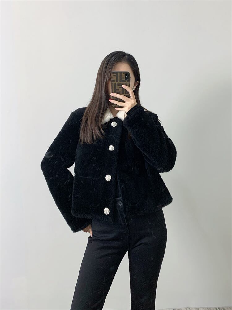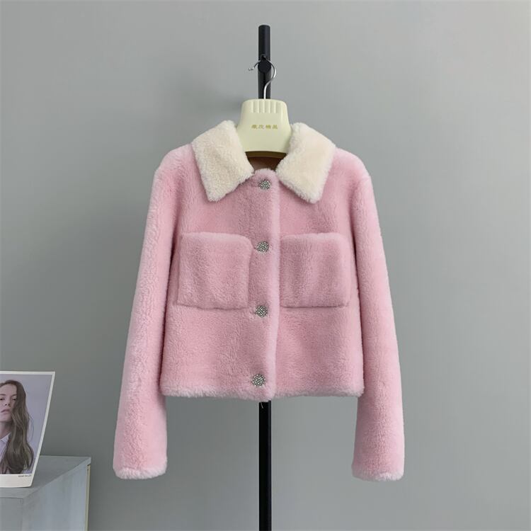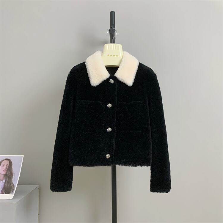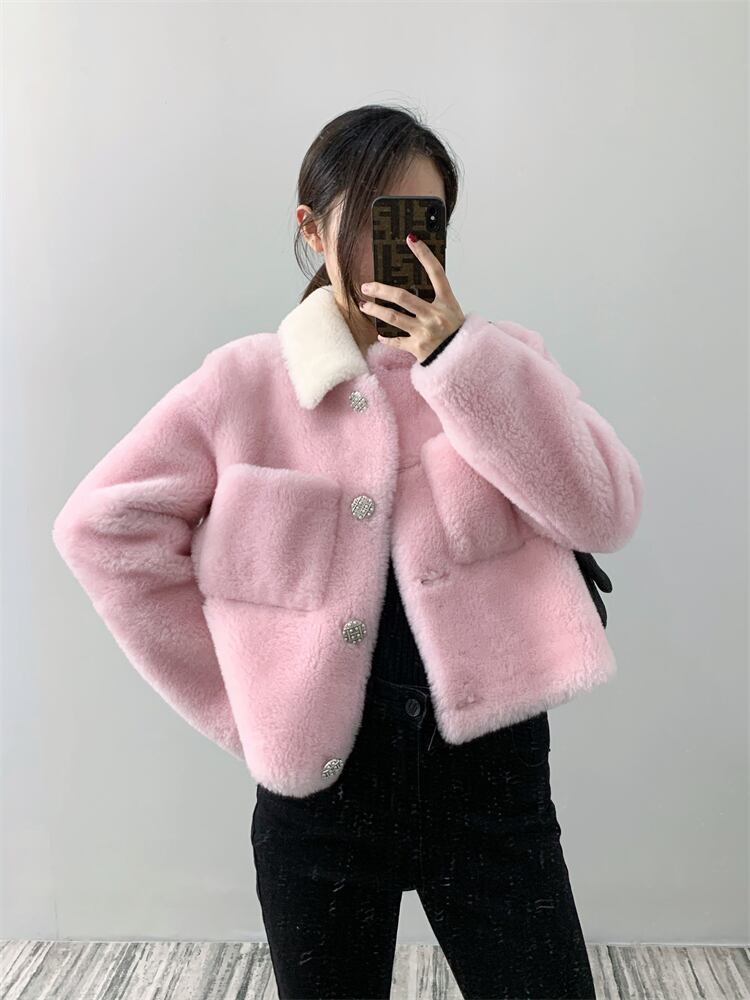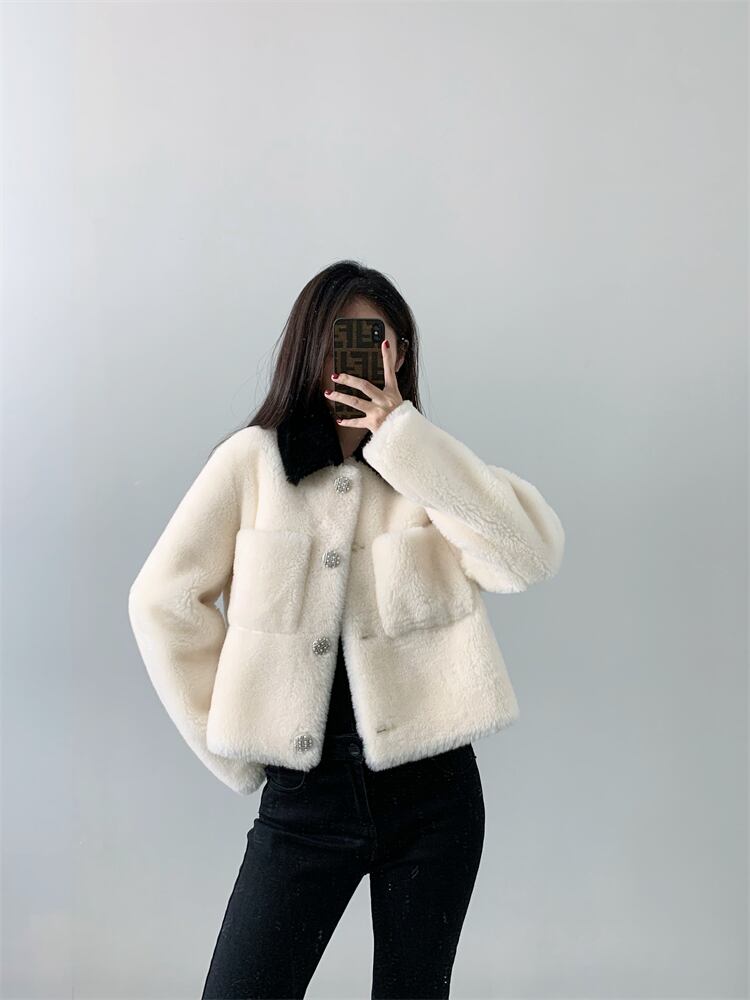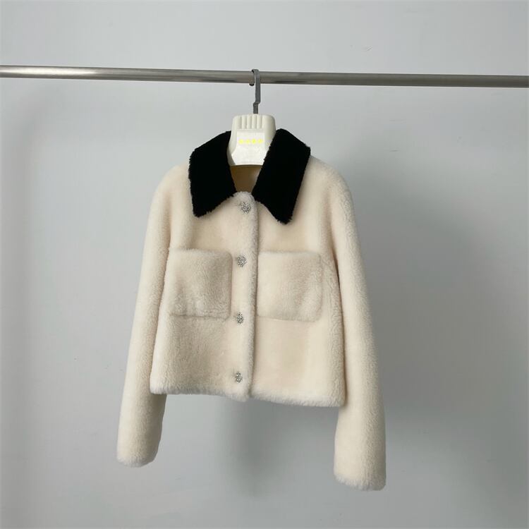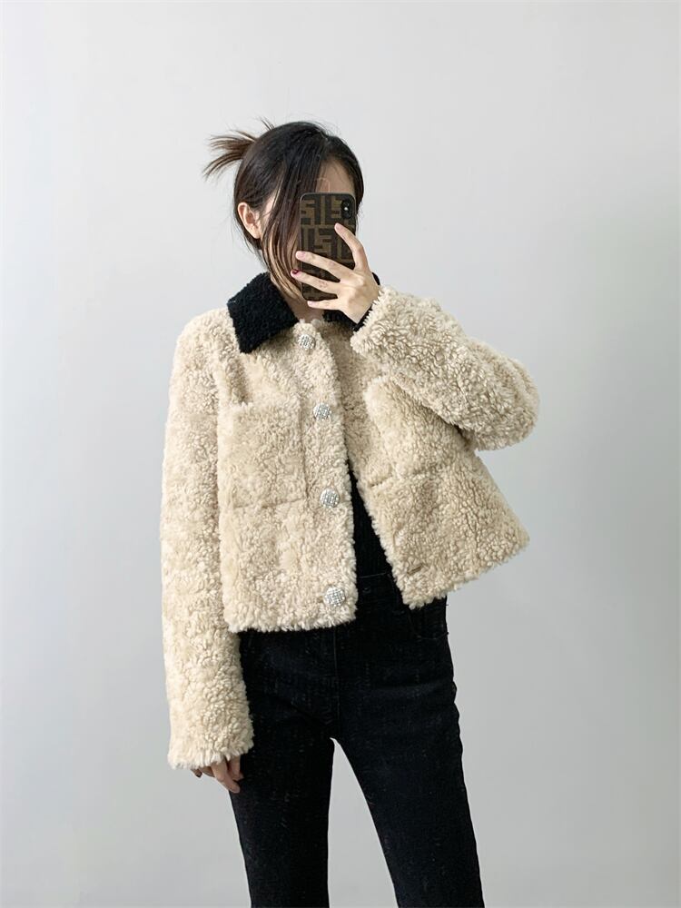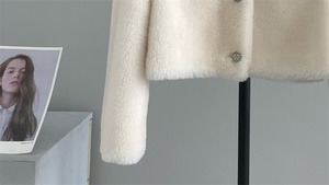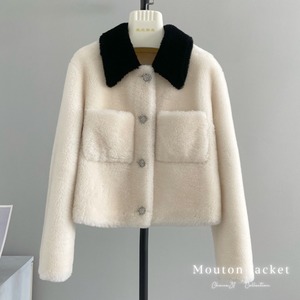 ■配色カラー 襟付き リアル ムートン ショート丈 ジャケット コート アウター 3色 レディースファッション ムートン 毛皮 ファー 冬 もこもこ テディベア